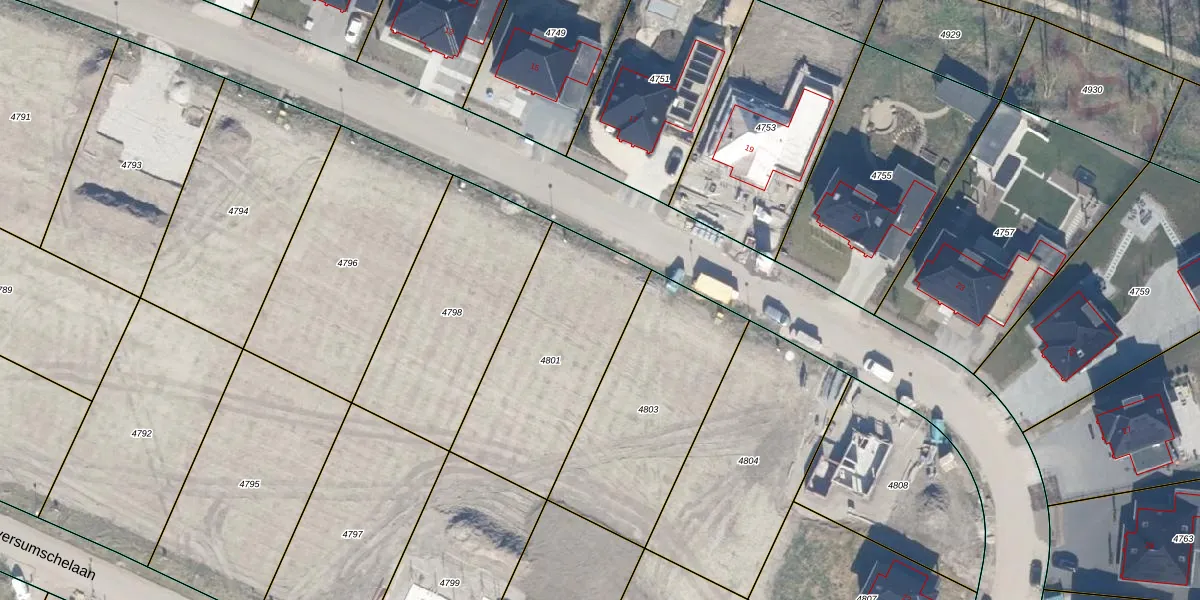 Hilversumschelaan 14 is gelegen op kadastraal perceel DTN01B4801. Deze kadastrale aanduiding is uniek en wordt gebruikt door het Kadaster om eigendomsrechten en andere zakelijke rechten vast te leggen. Het perceel maakt onderdeel uit van de kadastrale gemeente Dronten.
