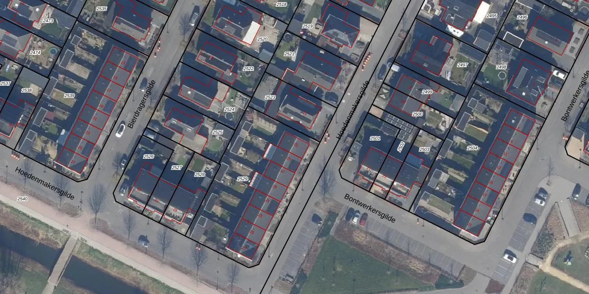 Het perceel waarop Hoedenmakersgilde 13 staat heeft een oppervlakte van 1322 m². Dit is een zeer groot perceel. De perceeloppervlakte wordt geregistreerd door het Kadaster. Gedetailleerde informatie over de maten van dit perceel kunt u vinden in het rapport Kadastrale kaart met maatvoering van Hoedenmakersgilde 13.