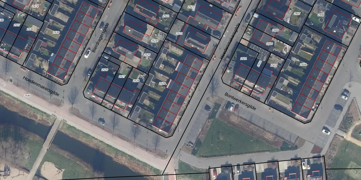 Het perceel waarop Hoedenmakersgilde 19 staat heeft een oppervlakte van 1322 m². Dit is een zeer groot perceel. De perceeloppervlakte wordt geregistreerd door het Kadaster. Gedetailleerde informatie over de maten van dit perceel kunt u vinden in het rapport Kadastrale kaart met maatvoering van Hoedenmakersgilde 19.