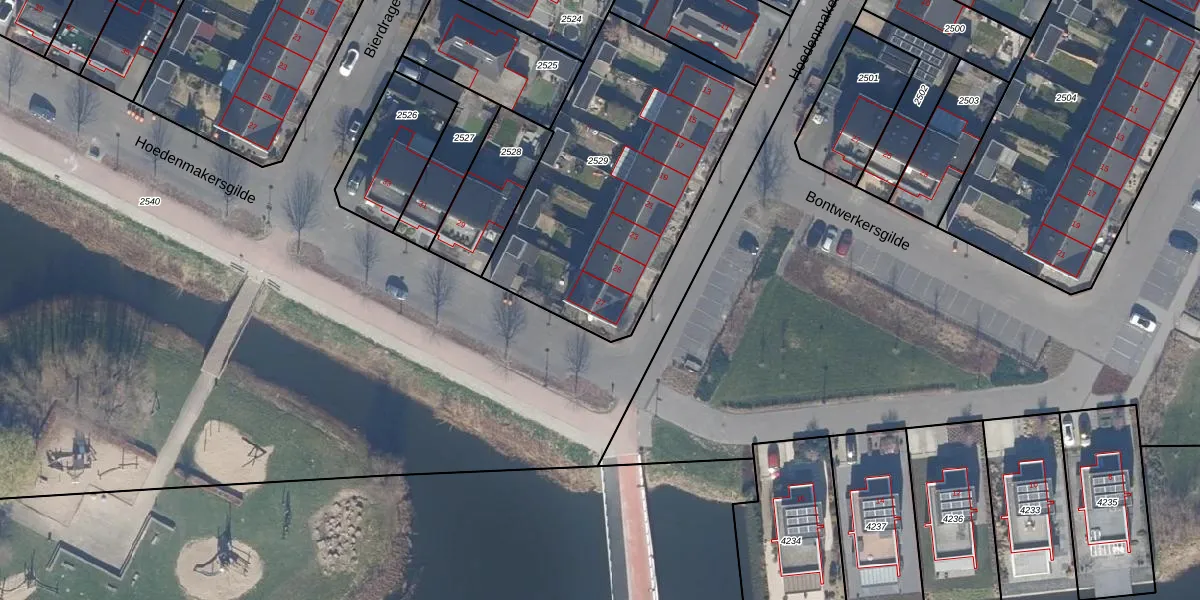 Het perceel waarop Hoedenmakersgilde 27 staat heeft een oppervlakte van 1322 m². Dit is een zeer groot perceel. De perceeloppervlakte wordt geregistreerd door het Kadaster. Gedetailleerde informatie over de maten van dit perceel kunt u vinden in het rapport Kadastrale kaart met maatvoering van Hoedenmakersgilde 27.