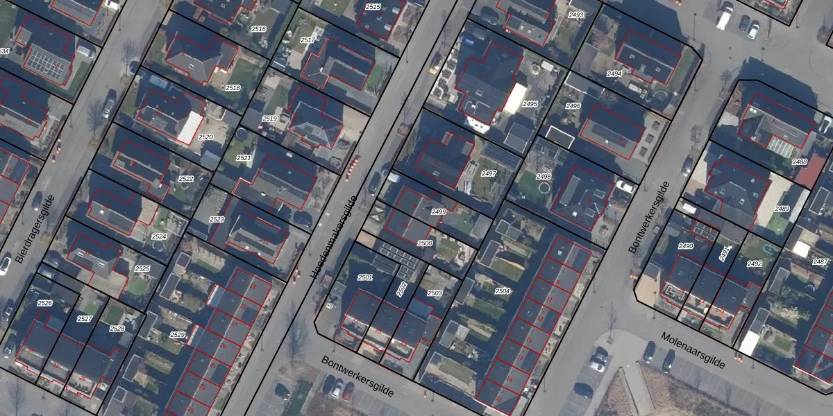 Hoedenmakersgilde 8 is gelegen op kadastraal perceel DTN01B2499. Deze kadastrale aanduiding is uniek en wordt gebruikt door het Kadaster om eigendomsrechten en andere zakelijke rechten vast te leggen. Het perceel maakt onderdeel uit van de kadastrale gemeente Dronten.
