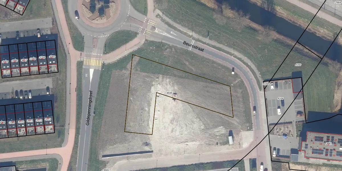 Het perceel waarop het adres ligt is DTN01-B-4935. De afkorting 'DTN01' staat voor kadastrale gemeente Dronten. Het perceel is kleiner dan gemiddeld in Dronten. Het perceel is 1471 m² groot, terwijl het gemiddelde ligt op 1,8 ha. Het kleinste perceel in de kadastrale gemeente is 0 m² groot. De grootste perceeloppervlakte is 25,03 km². Er zijn 36 adressen aanwezig op het perceel. In de Basisregistratie Kadaster (BRK) werden de grenzen van het perceel geregistreerd op 02-04-2024.