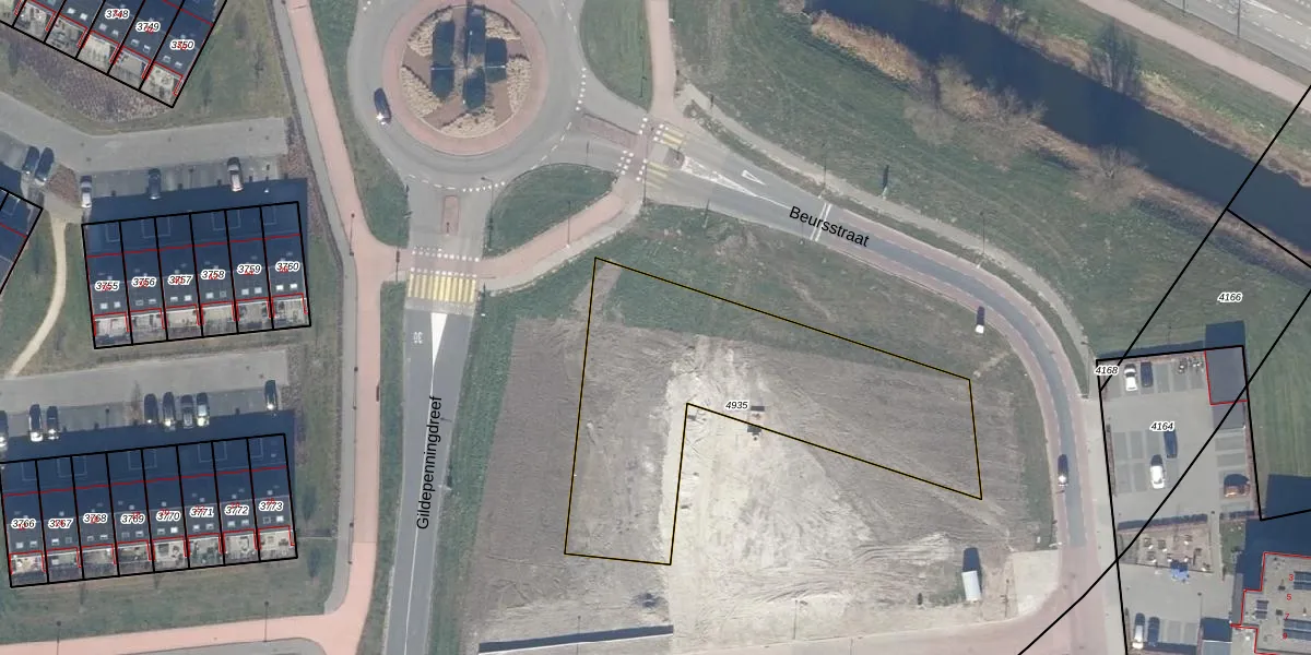 Het perceel waarop het adres ligt is DTN01-B-4935. De afkorting 'DTN01' staat voor kadastrale gemeente Dronten. Het perceel is kleiner dan gemiddeld in Dronten. Het perceel is 1471 m² groot, terwijl het gemiddelde ligt op 1,8 ha. Het kleinste perceel in de kadastrale gemeente is 0 m² groot. De grootste perceeloppervlakte is 25,03 km². Op het perceel zijn 36 adressen aanwezig. In de Basisregistratie Kadaster (BRK) werden de grenzen van het perceel geregistreerd op 02-04-2024.