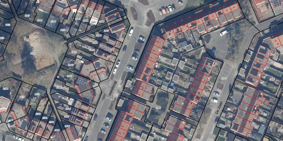 Het perceel waarop Hondsrug 174 staat heeft een oppervlakte van 3653 m². Dit is een zeer groot perceel. De perceeloppervlakte wordt geregistreerd door het Kadaster. Gedetailleerde informatie over de maten van dit perceel kunt u vinden in het rapport Kadastrale kaart met maatvoering van Hondsrug 174.