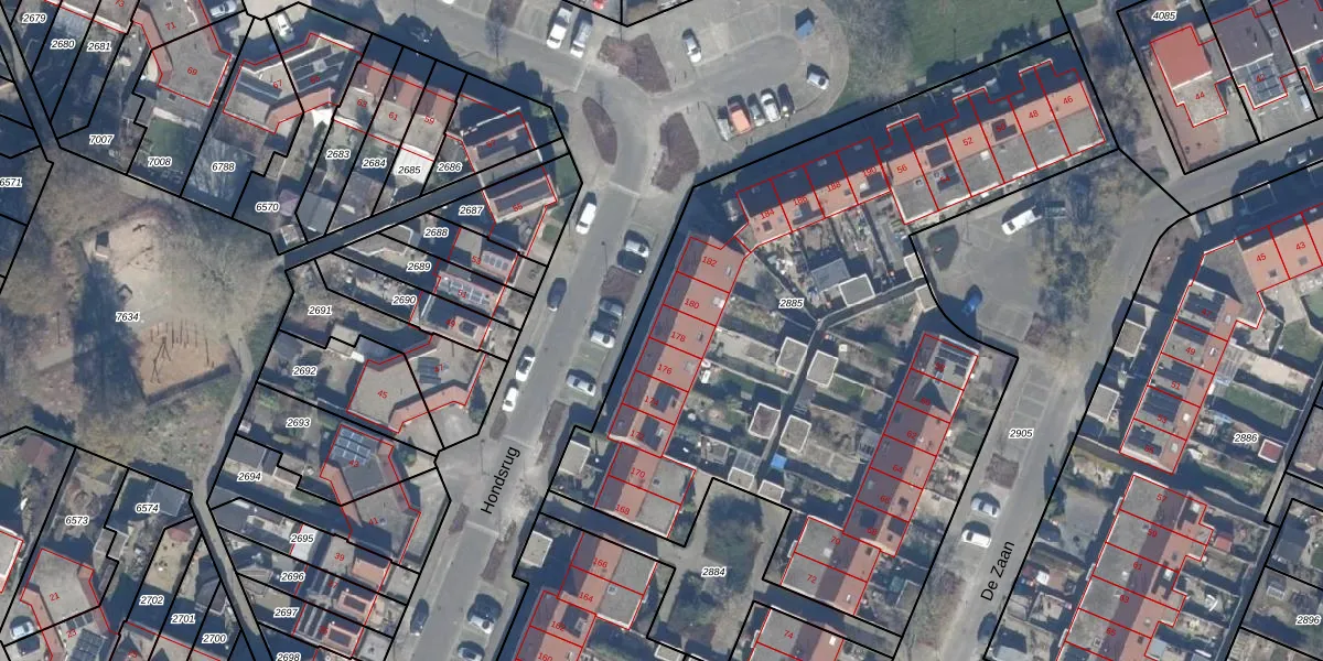 Het perceel waarop Hondsrug 178 staat heeft een oppervlakte van 3653 m². Dit is een zeer groot perceel. De perceeloppervlakte wordt geregistreerd door het Kadaster. Gedetailleerde informatie over de maten van dit perceel kunt u vinden in het rapport Kadastrale kaart met maatvoering van Hondsrug 178.