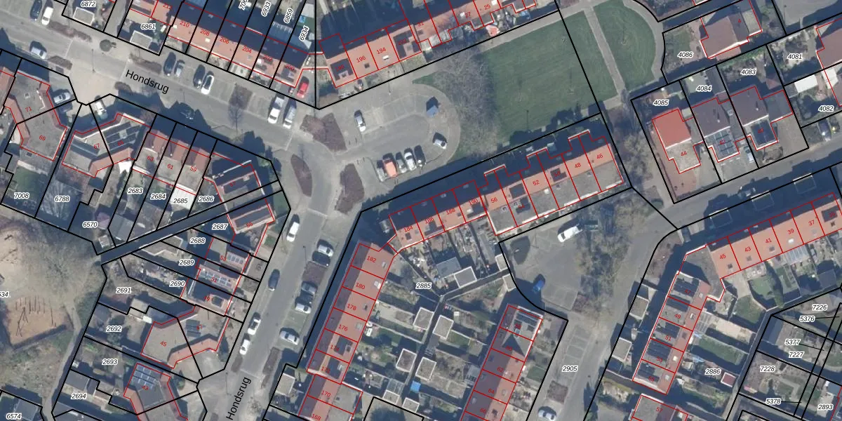 Het perceel waarop Hondsrug 186 staat heeft een oppervlakte van 3653 m². Dit is een zeer groot perceel. De perceeloppervlakte wordt geregistreerd door het Kadaster. Gedetailleerde informatie over de maten van dit perceel kunt u vinden in het rapport Kadastrale kaart met maatvoering van Hondsrug 186.
