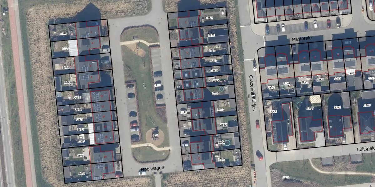 Het perceel waarop Hooiwagen 13 staat heeft een oppervlakte van 238 m². Dit is een middelgroot perceel. De perceeloppervlakte wordt geregistreerd door het Kadaster. Gedetailleerde informatie over de maten van dit perceel kunt u vinden in het rapport Kadastrale kaart met maatvoering van Hooiwagen 13.