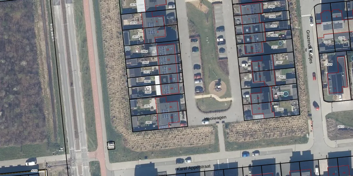 Hooiwagen 18 is gelegen op kadastraal perceel DTN01K2880. Deze kadastrale aanduiding is uniek en wordt gebruikt door het Kadaster om eigendomsrechten en andere zakelijke rechten vast te leggen. Het perceel maakt onderdeel uit van de kadastrale gemeente Dronten.
