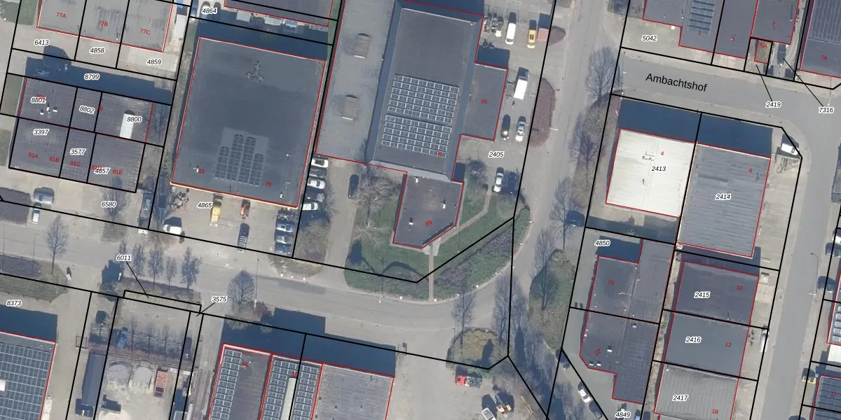 Het adres is gelegen op perceel 2405 in de sectie A en de kadastrale gemeente Dronten. De kadastrale aanduiding is aldus DTN01-A-2405. De gemiddelde perceelgrootte in Dronten is 1,8 ha. Dit perceel is kleiner: de perceeloppervlakte bedraagt 3789 m². Het kleinste perceel in de kadastrale gemeente is 0 m² groot. De grootste perceeloppervlakte is 25,03 km². Er zijn 3 adressen aanwezig op het perceel. In de Basisregistratie Kadaster (BRK) werden de grenzen van het perceel geregistreerd op 07-11-2008.
