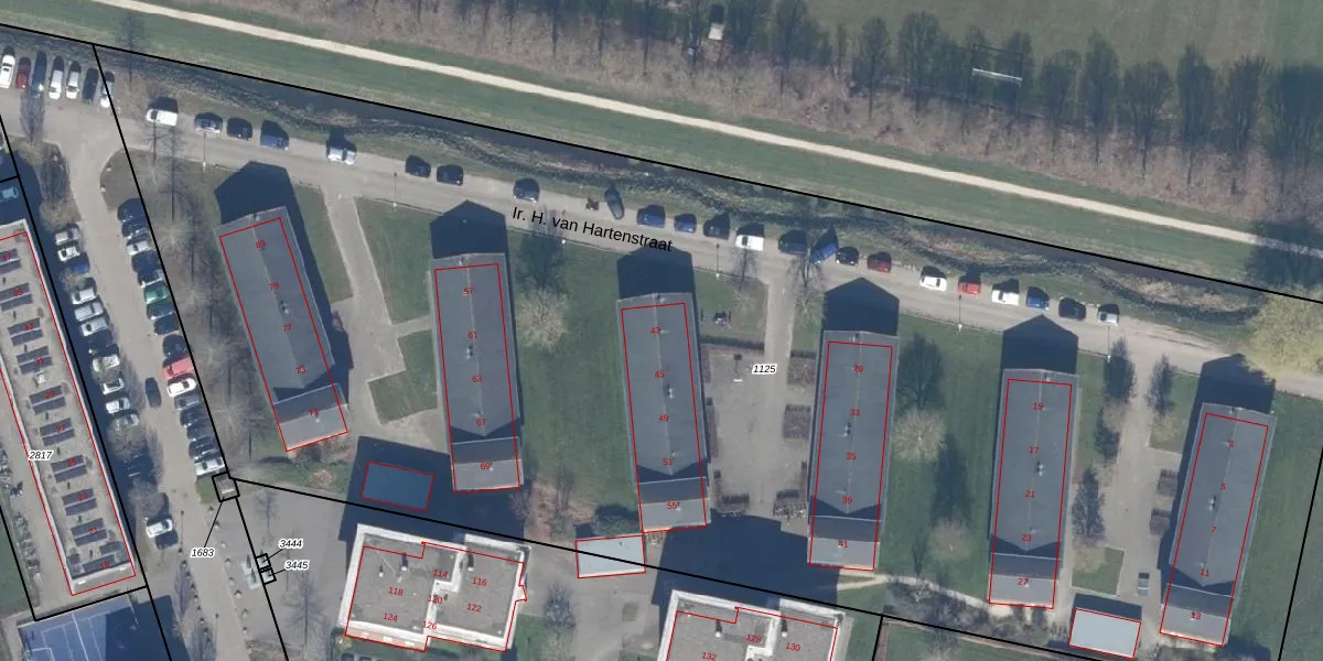 Het perceel waarop Ir. H. van Hartenstraat 55 staat heeft een oppervlakte van 1,1 ha. Dit is een zeer groot perceel. De perceeloppervlakte wordt geregistreerd door het Kadaster. Gedetailleerde informatie over de maten van dit perceel kunt u vinden in het rapport Kadastrale kaart met maatvoering van Ir. H. van Hartenstraat 55.