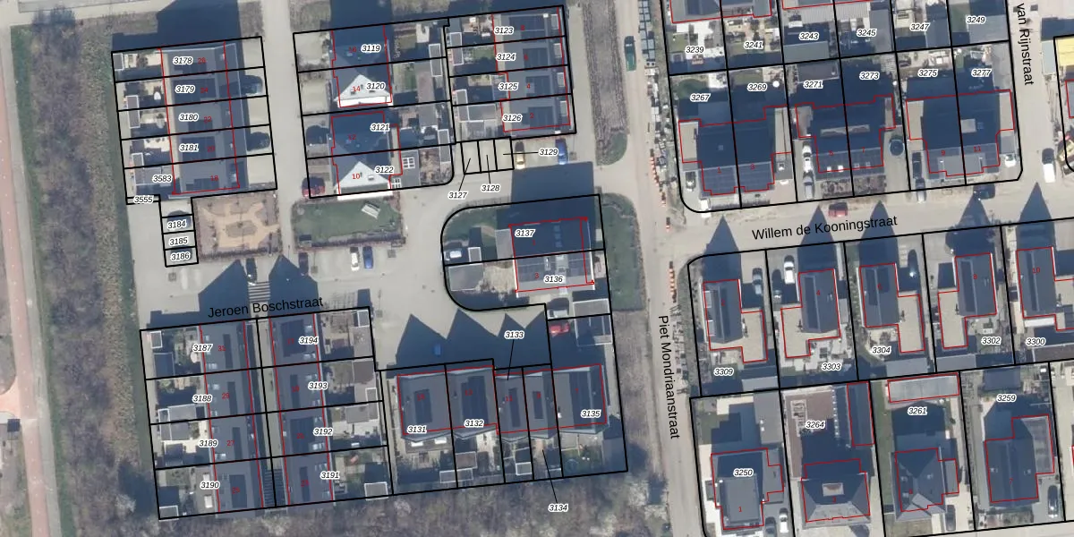 Het perceel waarop Jeroen Boschstraat 3 staat heeft een oppervlakte van 300 m². Dit is een groot perceel. De perceeloppervlakte wordt geregistreerd door het Kadaster. Gedetailleerde informatie over de maten van dit perceel kunt u vinden in het rapport Kadastrale kaart met maatvoering van Jeroen Boschstraat 3.