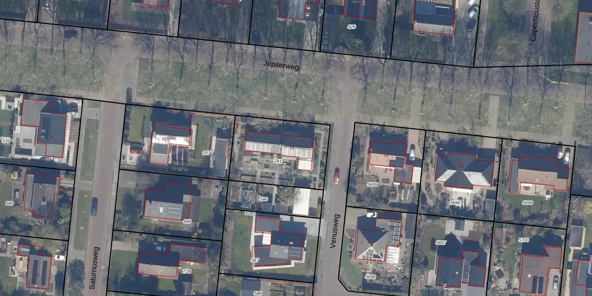 Het perceel waarop Jupiterweg 12 staat heeft een oppervlakte van 714 m². Dit is een groot perceel. De perceeloppervlakte wordt geregistreerd door het Kadaster. Gedetailleerde informatie over de maten van dit perceel kunt u vinden in het rapport Kadastrale kaart met maatvoering van Jupiterweg 12.