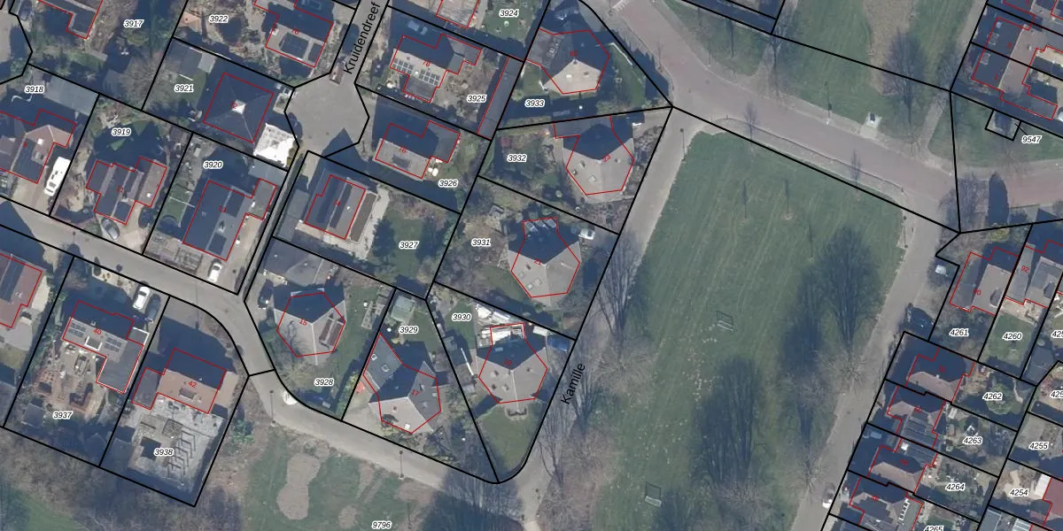Het perceel waarop Kamille 21 staat heeft een oppervlakte van 625 m². Dit is een groot perceel. De perceeloppervlakte wordt geregistreerd door het Kadaster. Gedetailleerde informatie over de maten van dit perceel kunt u vinden in het rapport Kadastrale kaart met maatvoering van Kamille 21.