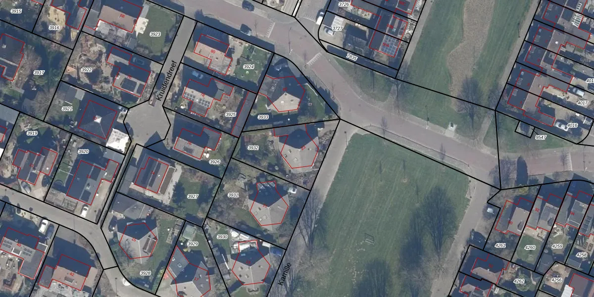 Het perceel waarop Kamille 23 staat heeft een oppervlakte van 514 m². Dit is een groot perceel. De perceeloppervlakte wordt geregistreerd door het Kadaster. Gedetailleerde informatie over de maten van dit perceel kunt u vinden in het rapport Kadastrale kaart met maatvoering van Kamille 23.