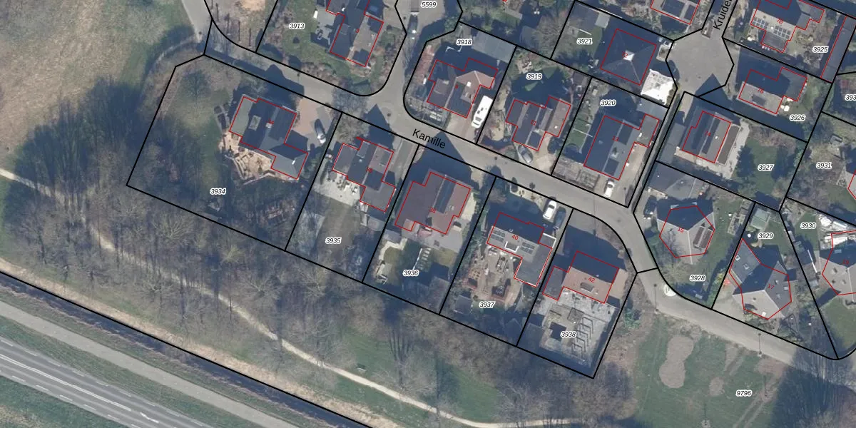 Het perceel waarop Kamille 38 staat heeft een oppervlakte van 683 m². Dit is een groot perceel. De perceeloppervlakte wordt geregistreerd door het Kadaster. Gedetailleerde informatie over de maten van dit perceel kunt u vinden in het rapport Kadastrale kaart met maatvoering van Kamille 38.