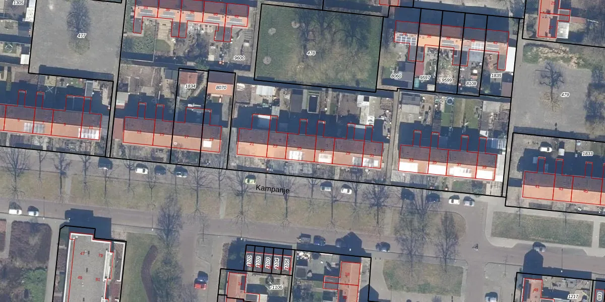Het perceel waarop Kampanje 25 staat heeft een oppervlakte van 5835 m². Dit is een zeer groot perceel. De perceeloppervlakte wordt geregistreerd door het Kadaster. Gedetailleerde informatie over de maten van dit perceel kunt u vinden in het rapport Kadastrale kaart met maatvoering van Kampanje 25.