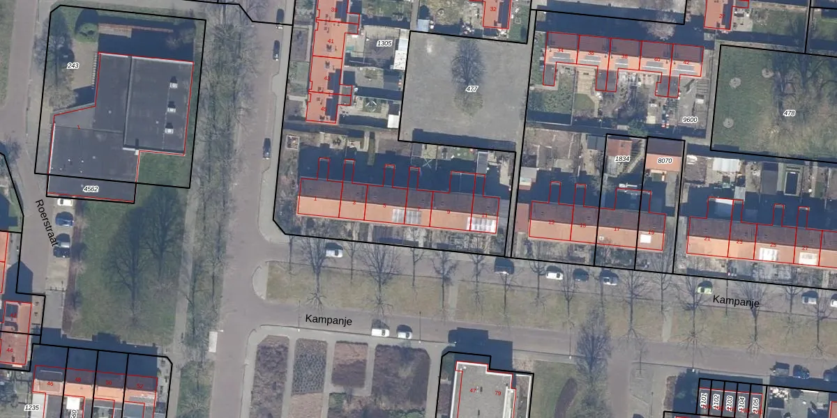 Het perceel waarop Kampanje 7 staat heeft een oppervlakte van 4073 m². Dit is een zeer groot perceel. De perceeloppervlakte wordt geregistreerd door het Kadaster. Gedetailleerde informatie over de maten van dit perceel kunt u vinden in het rapport Kadastrale kaart met maatvoering van Kampanje 7.