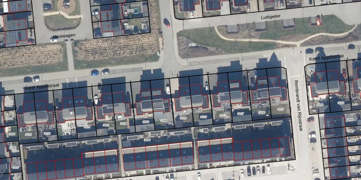 Het perceel waarop Karel Appelstraat 48 staat heeft een oppervlakte van 303 m². Dit is een groot perceel. De perceeloppervlakte wordt geregistreerd door het Kadaster. Gedetailleerde informatie over de maten van dit perceel kunt u vinden in het rapport Kadastrale kaart met maatvoering van Karel Appelstraat 48.