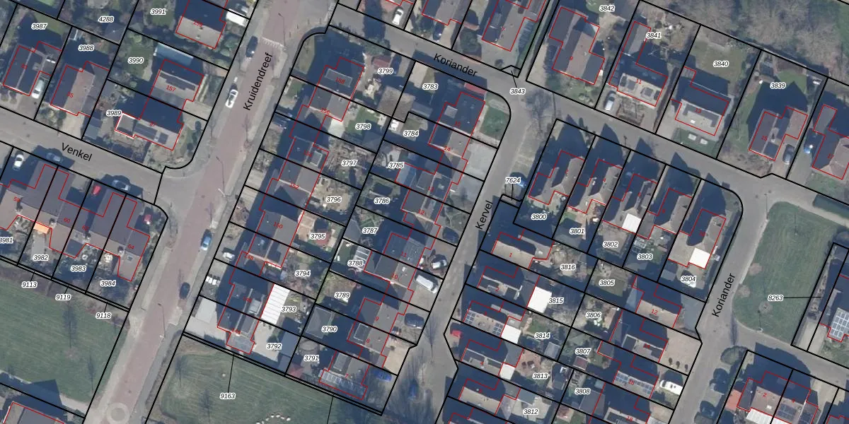 Het perceel waarop Kervel 12 staat heeft een oppervlakte van 215 m². Dit is een middelgroot perceel. De perceeloppervlakte wordt geregistreerd door het Kadaster. Gedetailleerde informatie over de maten van dit perceel kunt u vinden in het rapport Kadastrale kaart met maatvoering van Kervel 12.