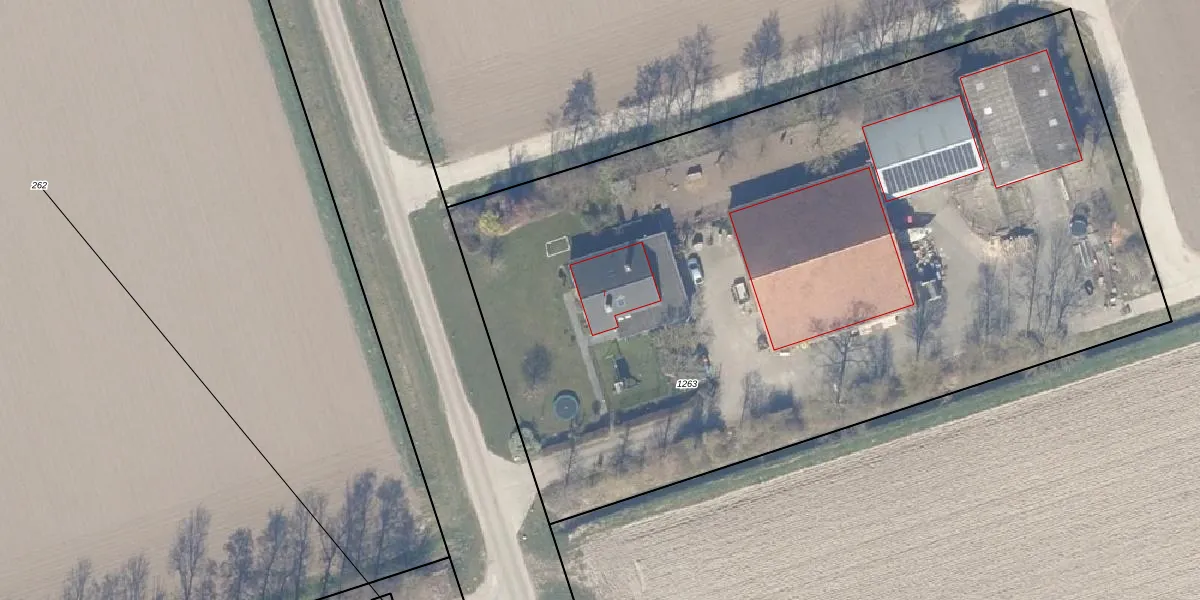 Het adres is gelegen op perceel 1263 in de sectie C en de kadastrale gemeente Dronten. De kadastrale aanduiding is aldus DTN01-C-1263. Het perceel is kleiner dan gemiddeld in Dronten. Het perceel is 6000 m² groot, terwijl het gemiddelde ligt op 1,8 ha. De grootste perceeloppervlakte in de kadastrale gemeente is 25,03 km². De kleinste oppervlakte bedraagt 0 m². Er zijn geen andere adressen aanwezig op het perceel. De laatste wijziging in het de Basisregistratie Kadaster (BRK) was op 17-03-2009.
