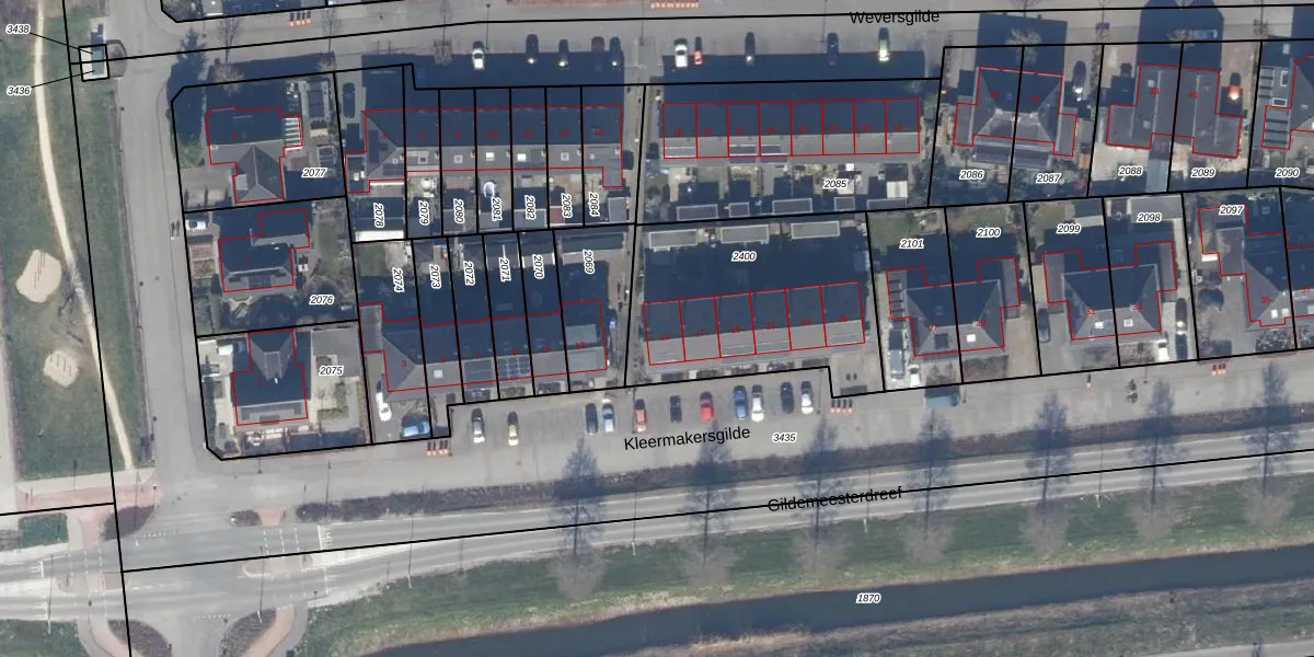 Het perceel waarop Kleermakersgilde 15 staat heeft een oppervlakte van 919 m². Dit is een groot perceel. De perceeloppervlakte wordt geregistreerd door het Kadaster. Gedetailleerde informatie over de maten van dit perceel kunt u vinden in het rapport Kadastrale kaart met maatvoering van Kleermakersgilde 15.