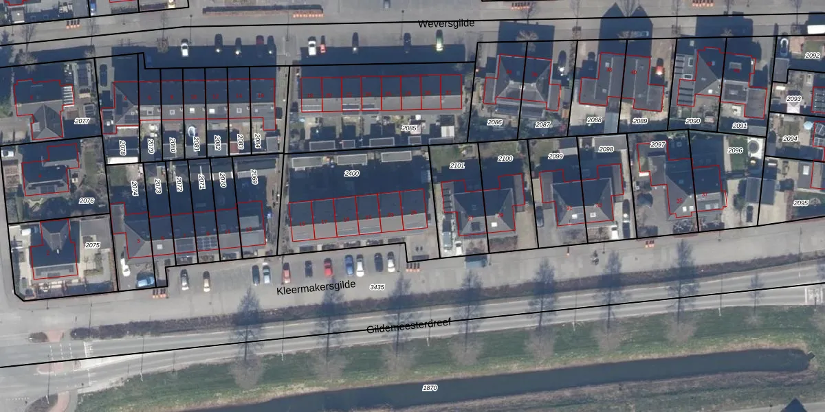 Het perceel waarop Kleermakersgilde 25 staat heeft een oppervlakte van 919 m². Dit is een groot perceel. De perceeloppervlakte wordt geregistreerd door het Kadaster. Gedetailleerde informatie over de maten van dit perceel kunt u vinden in het rapport Kadastrale kaart met maatvoering van Kleermakersgilde 25.