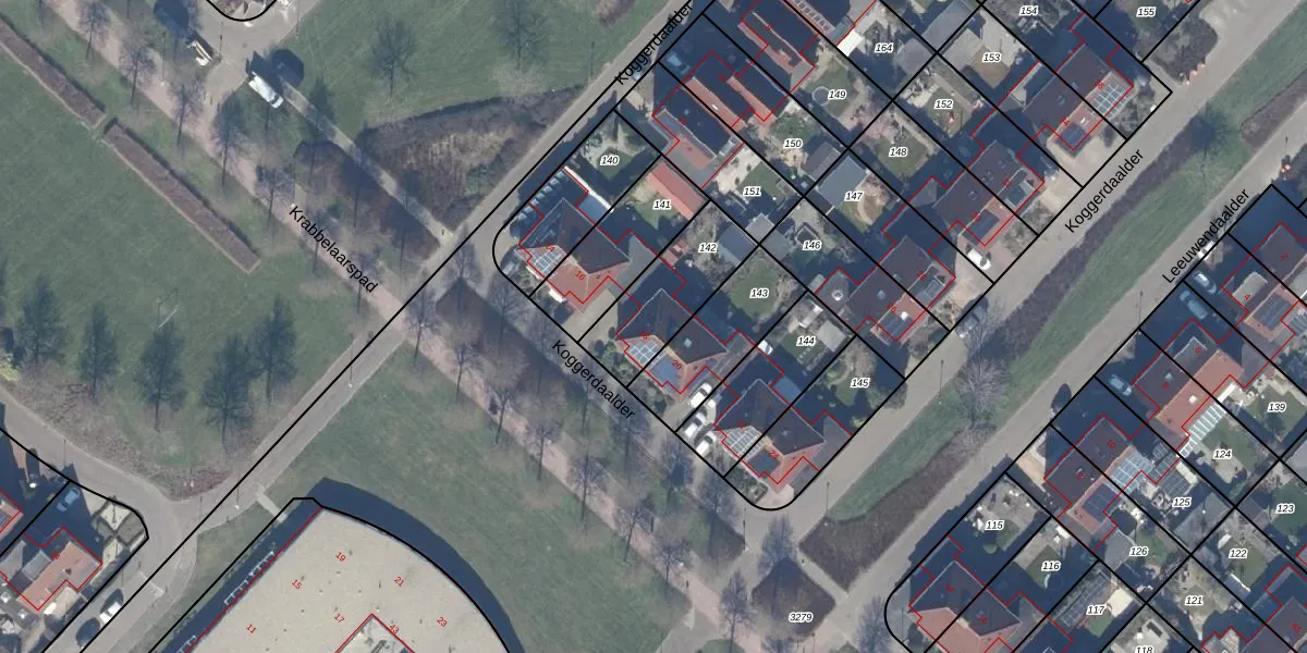 Het perceel waarop Koggerdaalder 18 staat heeft een oppervlakte van 305 m². Dit is een groot perceel. De perceeloppervlakte wordt geregistreerd door het Kadaster. Gedetailleerde informatie over de maten van dit perceel kunt u vinden in het rapport Kadastrale kaart met maatvoering van Koggerdaalder 18.