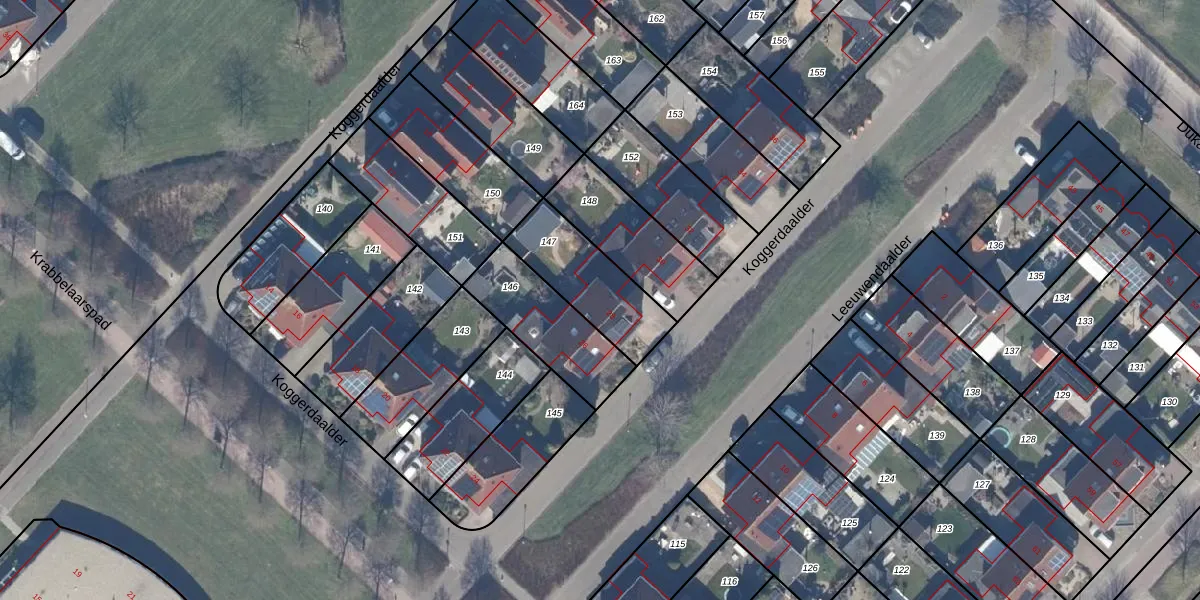 Het perceel waarop Koggerdaalder 28 staat heeft een oppervlakte van 305 m². Dit is een groot perceel. De perceeloppervlakte wordt geregistreerd door het Kadaster. Gedetailleerde informatie over de maten van dit perceel kunt u vinden in het rapport Kadastrale kaart met maatvoering van Koggerdaalder 28.
