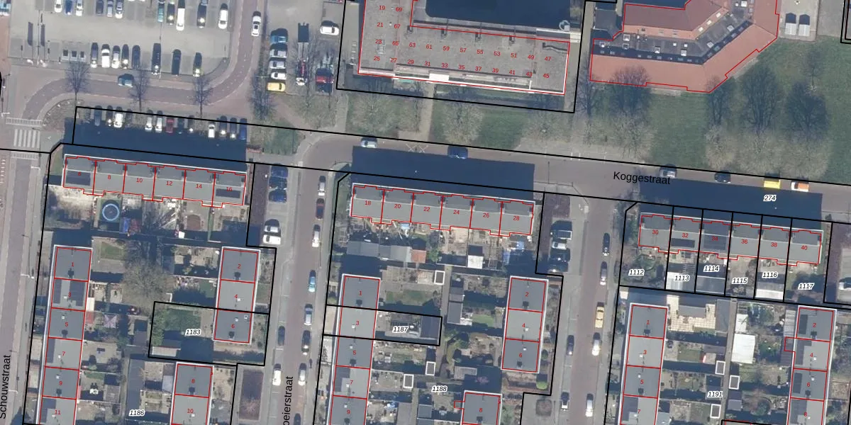 Het perceel waarop Koggestraat 22 staat heeft een oppervlakte van 5060 m². Dit is een zeer groot perceel. De perceeloppervlakte wordt geregistreerd door het Kadaster. Gedetailleerde informatie over de maten van dit perceel kunt u vinden in het rapport Kadastrale kaart met maatvoering van Koggestraat 22.