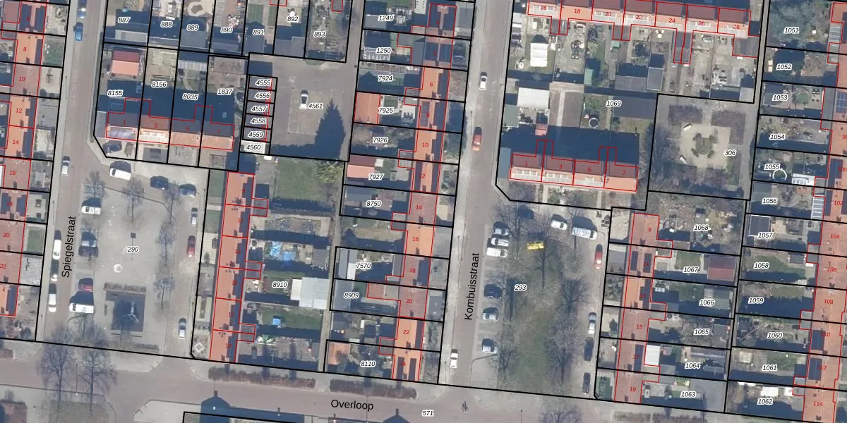 Gebruik de zoekbalk of klik op een perceel voor informatie over de adressen binnen dit perceel.