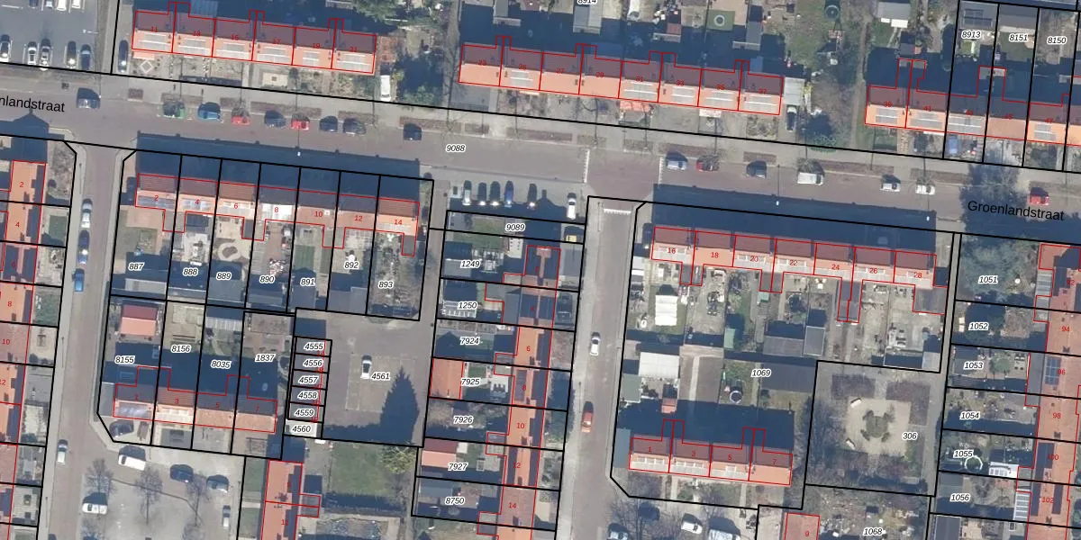 Gebruik de zoekbalk of klik op een perceel voor informatie over de adressen binnen dit perceel.