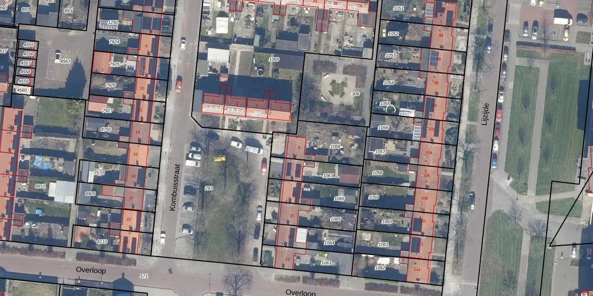 Het perceel waarop Kombuisstraat 9 staat heeft een oppervlakte van 382 m². Dit is een groot perceel. De perceeloppervlakte wordt geregistreerd door het Kadaster. Gedetailleerde informatie over de maten van dit perceel kunt u vinden in het rapport Kadastrale kaart met maatvoering van Kombuisstraat 9.