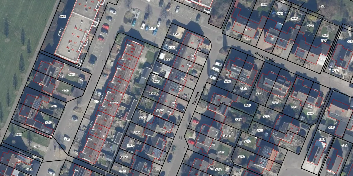 Het perceel waarop Komijn 35 staat heeft een oppervlakte van 189 m². Dit is een middelgroot perceel. De perceeloppervlakte wordt geregistreerd door het Kadaster. Gedetailleerde informatie over de maten van dit perceel kunt u vinden in het rapport Kadastrale kaart met maatvoering van Komijn 35.