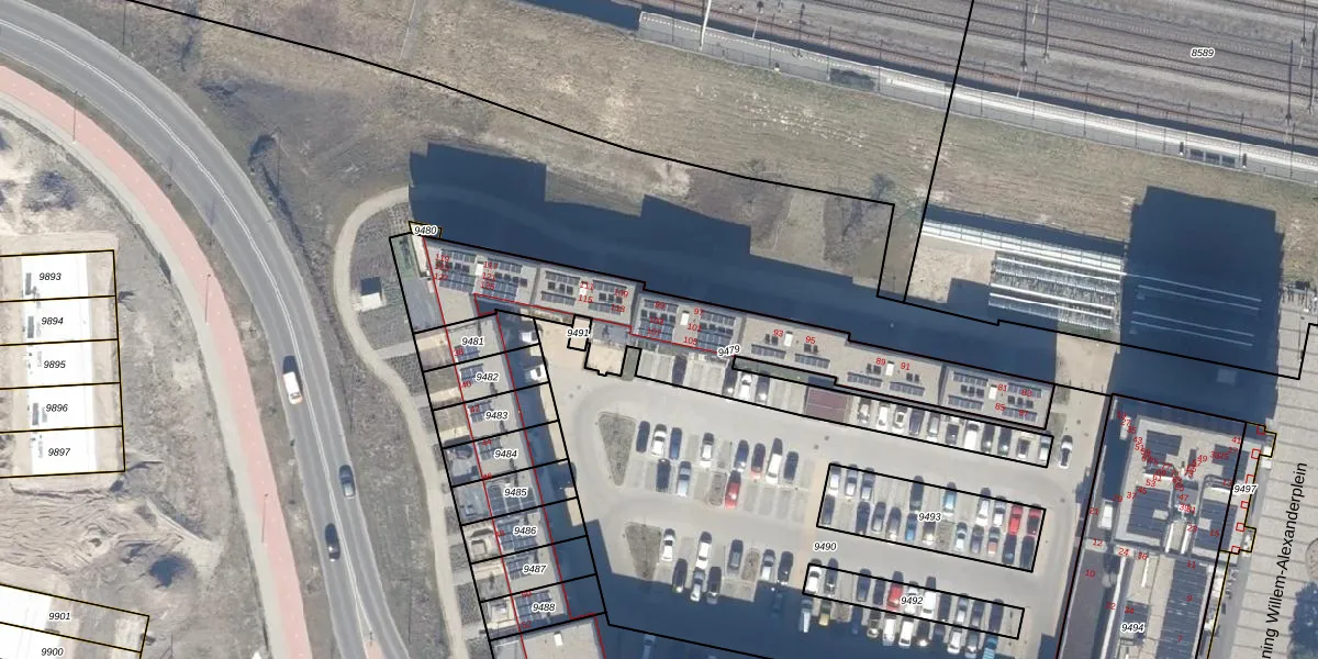 Het perceel waarop Koning Willem-Alexanderplein 107 staat heeft een oppervlakte van 1182 m². Dit is een zeer groot perceel. De perceeloppervlakte wordt geregistreerd door het Kadaster. Gedetailleerde informatie over de maten van dit perceel kunt u vinden in het rapport Kadastrale kaart met maatvoering van Koning Willem-Alexanderplein 107.