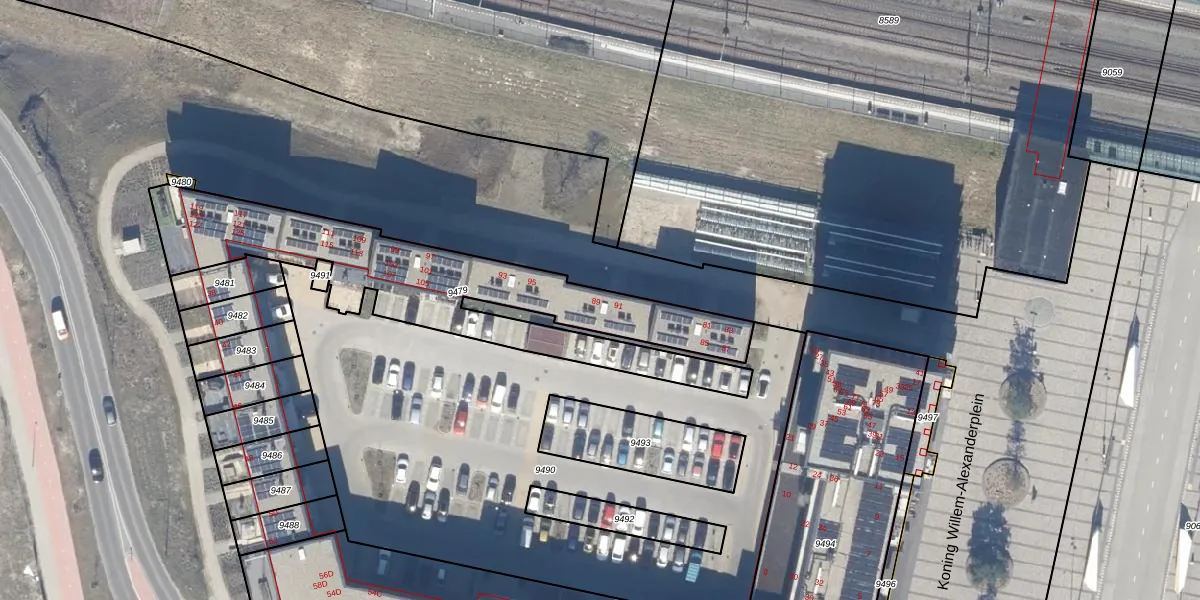 Het perceel waarop Koning Willem-Alexanderplein 89 staat heeft een oppervlakte van 1182 m². Dit is een zeer groot perceel. De perceeloppervlakte wordt geregistreerd door het Kadaster. Gedetailleerde informatie over de maten van dit perceel kunt u vinden in het rapport Kadastrale kaart met maatvoering van Koning Willem-Alexanderplein 89.