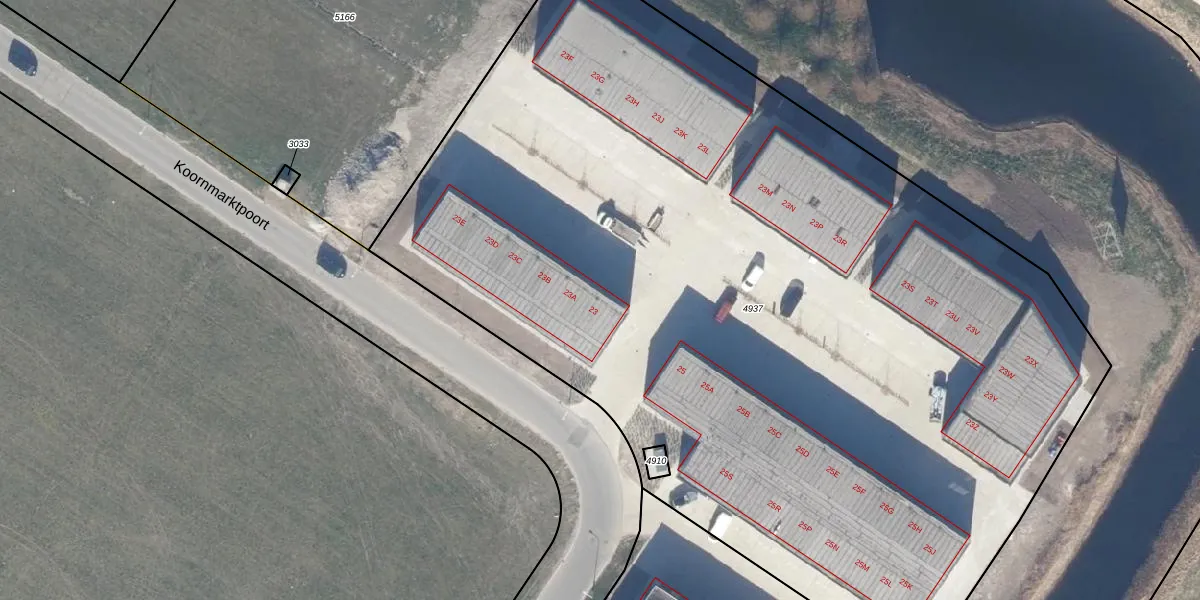 Koornmarktpoort 23 is gelegen op kadastraal perceel DTN01B4937. Deze kadastrale aanduiding is uniek en wordt gebruikt door het Kadaster om eigendomsrechten en andere zakelijke rechten vast te leggen. Het perceel maakt onderdeel uit van de kadastrale gemeente Dronten.