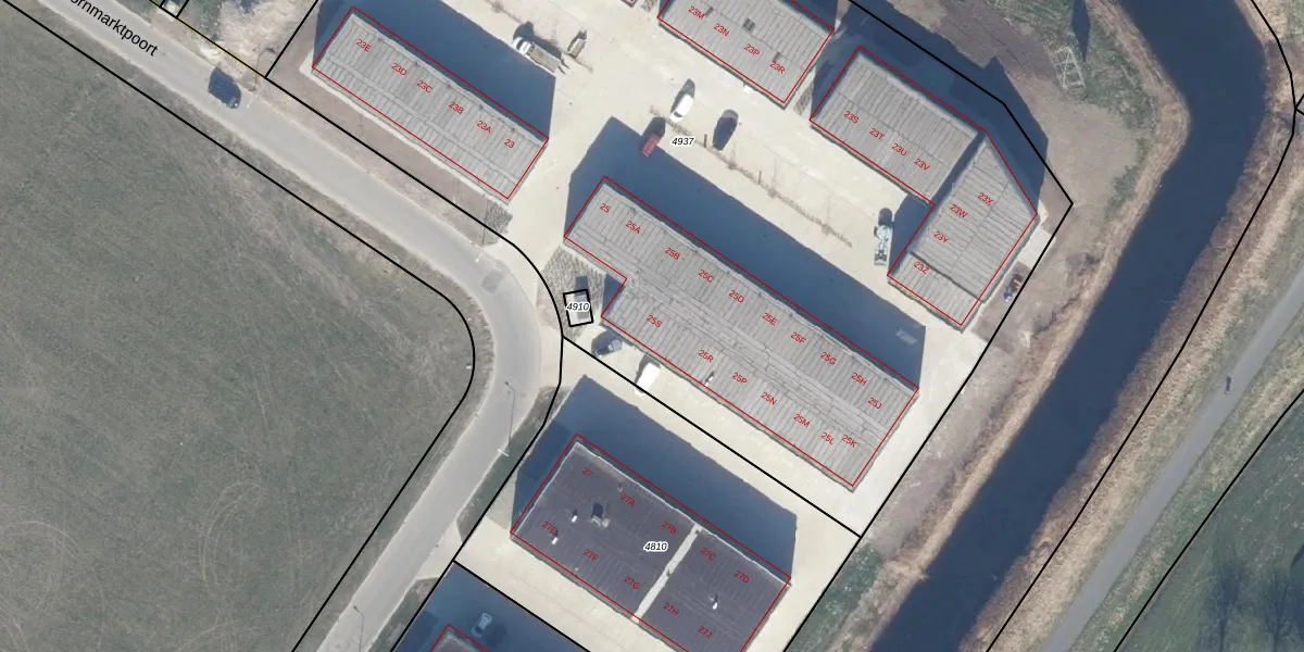 Koornmarktpoort 25-S is gelegen op kadastraal perceel DTN01B4937. Deze kadastrale aanduiding is uniek en wordt gebruikt door het Kadaster om eigendomsrechten en andere zakelijke rechten vast te leggen. Het perceel maakt onderdeel uit van de kadastrale gemeente Dronten.