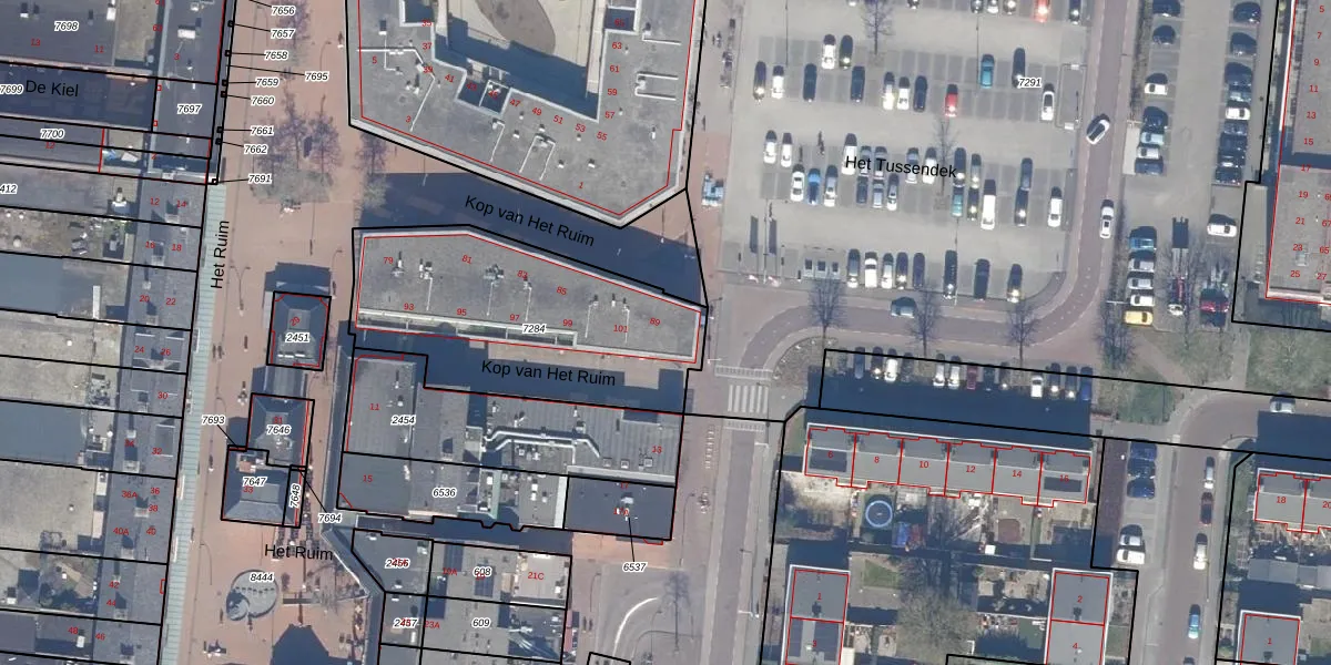 Kop van Het Ruim 101 is gelegen op kadastraal perceel DTN01A7284. Deze kadastrale aanduiding is uniek en wordt gebruikt door het Kadaster om eigendomsrechten en andere zakelijke rechten vast te leggen. Het perceel maakt onderdeel uit van de kadastrale gemeente Dronten.