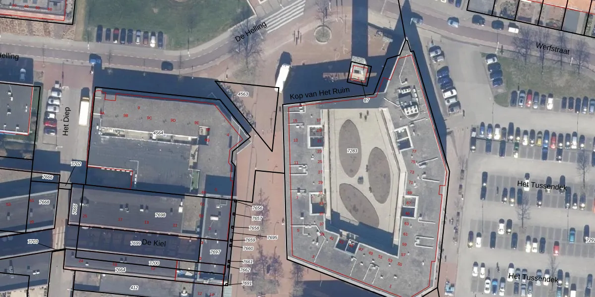 Het perceel waarop Kop van Het Ruim 23 staat heeft een oppervlakte van 3509 m². Dit is een zeer groot perceel. De perceeloppervlakte wordt geregistreerd door het Kadaster. Gedetailleerde informatie over de maten van dit perceel kunt u vinden in het rapport Kadastrale kaart met maatvoering van Kop van Het Ruim 23.