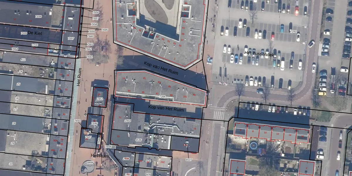 Kop van Het Ruim 95 is gelegen op kadastraal perceel DTN01A7284. Deze kadastrale aanduiding is uniek en wordt gebruikt door het Kadaster om eigendomsrechten en andere zakelijke rechten vast te leggen. Het perceel maakt onderdeel uit van de kadastrale gemeente Dronten.