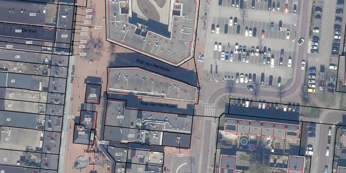 Kop van Het Ruim 97 is gelegen op kadastraal perceel DTN01A7284. Deze kadastrale aanduiding is uniek en wordt gebruikt door het Kadaster om eigendomsrechten en andere zakelijke rechten vast te leggen. Het perceel maakt onderdeel uit van de kadastrale gemeente Dronten.