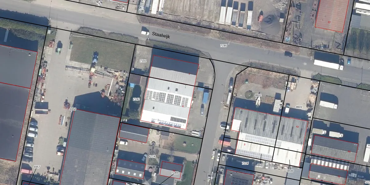 Het adres is gelegen op perceel 7142 in de sectie A en de kadastrale gemeente Dronten. De kadastrale aanduiding is aldus DTN01-A-7142. De gemiddelde perceelgrootte in Dronten is 1,8 ha. Dit perceel is kleiner: de perceeloppervlakte bedraagt 1237 m². Het grootste perceel in de kadastrale gemeente is 25,03 km². Het kleinste perceel heeft een oppervlakte van 0 m². Op het perceel bevinden zich geen andere adressen. In de Basisregistratie Kadaster (BRK) werden de grenzen van het perceel geregistreerd op 07-11-2008.