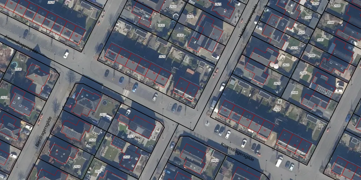 Het perceel waarop Korendragersgilde 54 staat heeft een oppervlakte van 1617 m². Dit is een zeer groot perceel. De perceeloppervlakte wordt geregistreerd door het Kadaster. Gedetailleerde informatie over de maten van dit perceel kunt u vinden in het rapport Kadastrale kaart met maatvoering van Korendragersgilde 54.