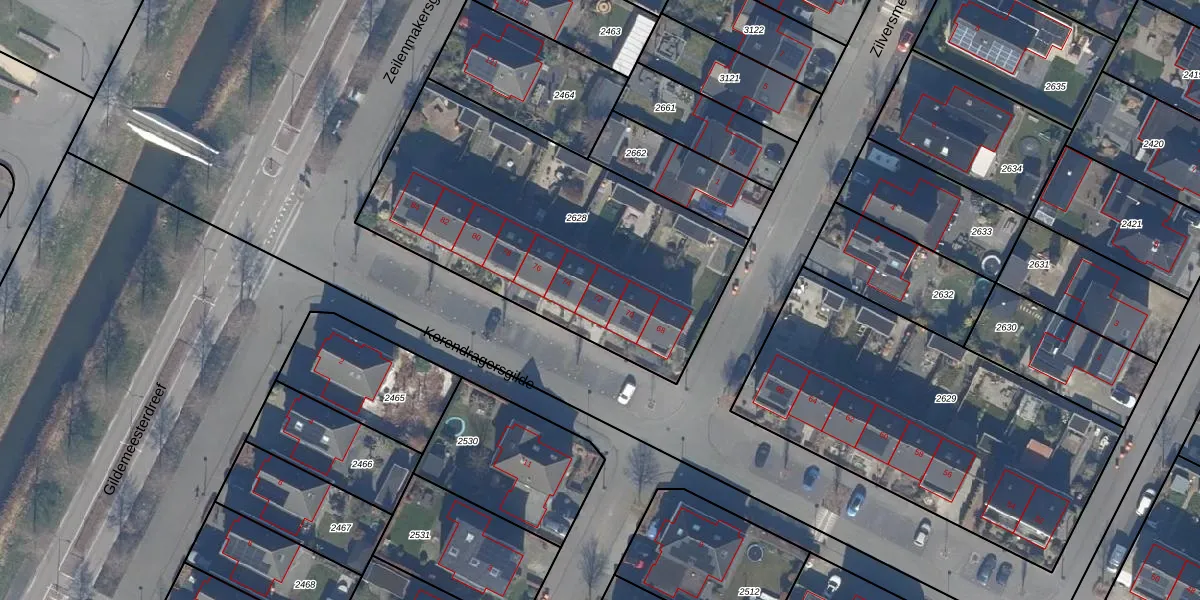 Het perceel waarop Korendragersgilde 72 staat heeft een oppervlakte van 1615 m². Dit is een zeer groot perceel. De perceeloppervlakte wordt geregistreerd door het Kadaster. Gedetailleerde informatie over de maten van dit perceel kunt u vinden in het rapport Kadastrale kaart met maatvoering van Korendragersgilde 72.