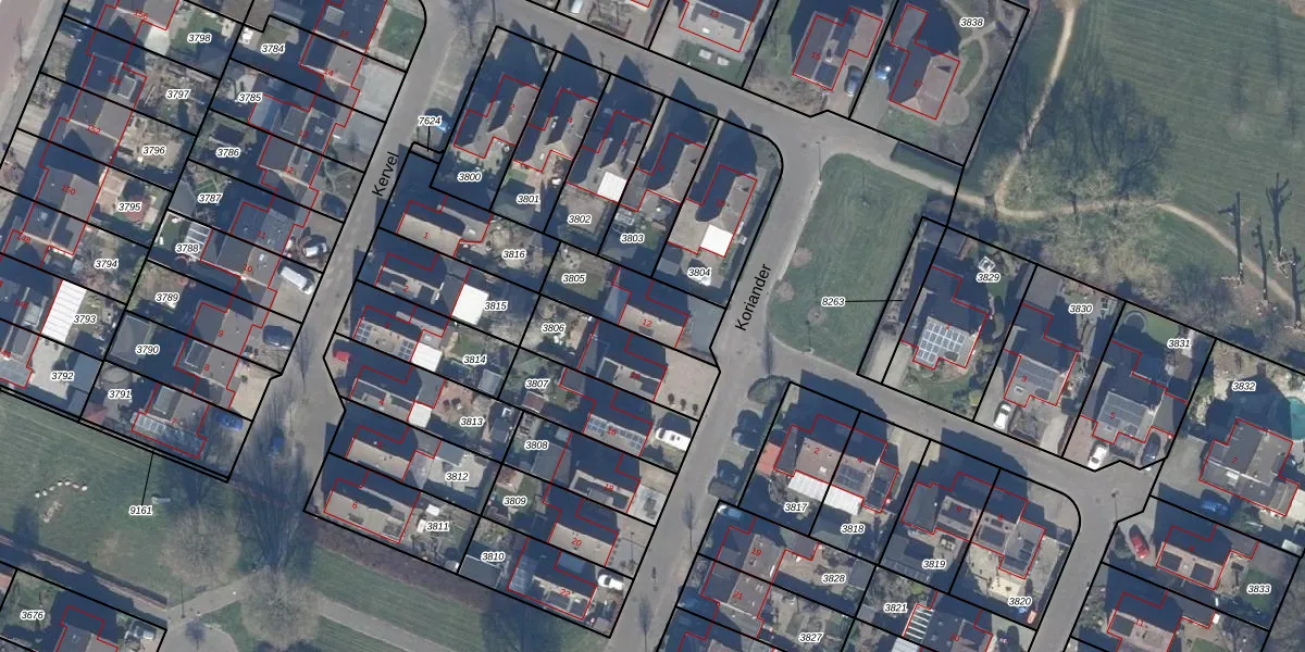 Het perceel waarop Koriander 12 staat heeft een oppervlakte van 242 m². Dit is een middelgroot perceel. De perceeloppervlakte wordt geregistreerd door het Kadaster. Gedetailleerde informatie over de maten van dit perceel kunt u vinden in het rapport Kadastrale kaart met maatvoering van Koriander 12.