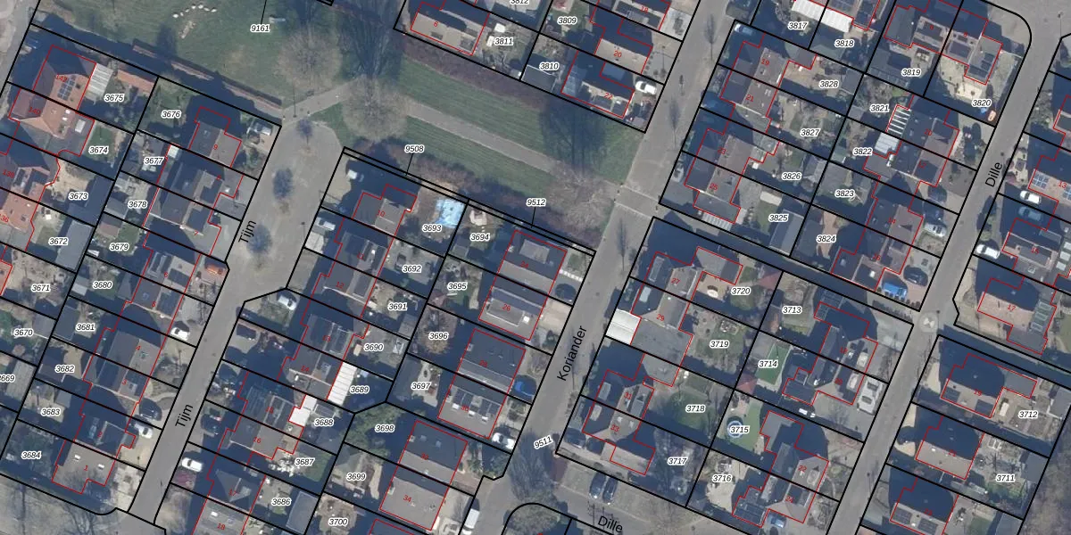 Het perceel waarop Koriander 24 staat heeft een oppervlakte van 258 m². Dit is een middelgroot perceel. De perceeloppervlakte wordt geregistreerd door het Kadaster. Gedetailleerde informatie over de maten van dit perceel kunt u vinden in het rapport Kadastrale kaart met maatvoering van Koriander 24.
