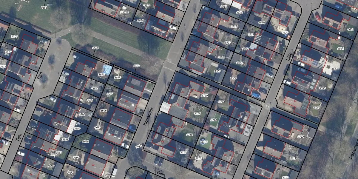 Het perceel waarop Koriander 27 staat heeft een oppervlakte van 316 m². Dit is een groot perceel. De perceeloppervlakte wordt geregistreerd door het Kadaster. Gedetailleerde informatie over de maten van dit perceel kunt u vinden in het rapport Kadastrale kaart met maatvoering van Koriander 27.
