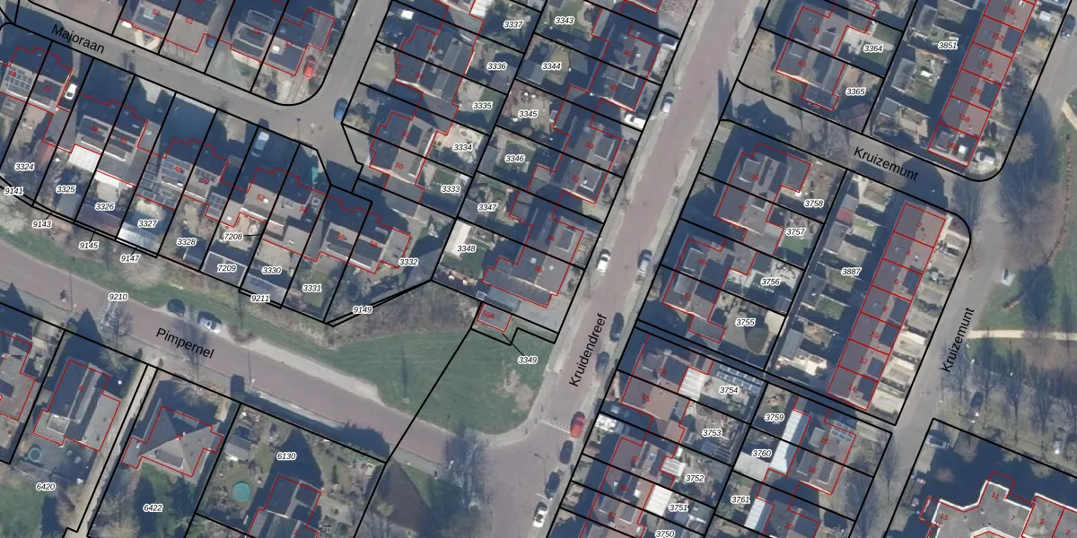 Kruidendreef 56 is gelegen op kadastraal perceel DTN01A3348. Deze kadastrale aanduiding is uniek en wordt gebruikt door het Kadaster om eigendomsrechten en andere zakelijke rechten vast te leggen. Het perceel maakt onderdeel uit van de kadastrale gemeente Dronten.