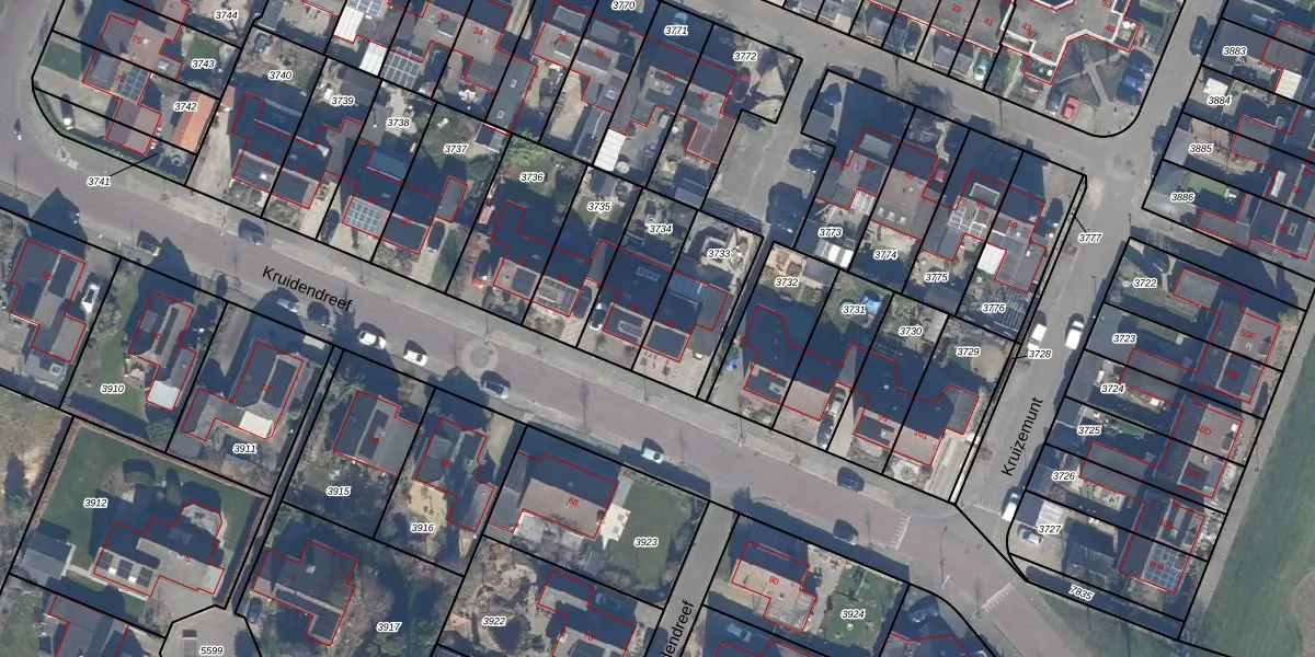 Kruidendreef 93 is gelegen op kadastraal perceel DTN01A3733. Deze kadastrale aanduiding is uniek en wordt gebruikt door het Kadaster om eigendomsrechten en andere zakelijke rechten vast te leggen. Het perceel maakt onderdeel uit van de kadastrale gemeente Dronten.
