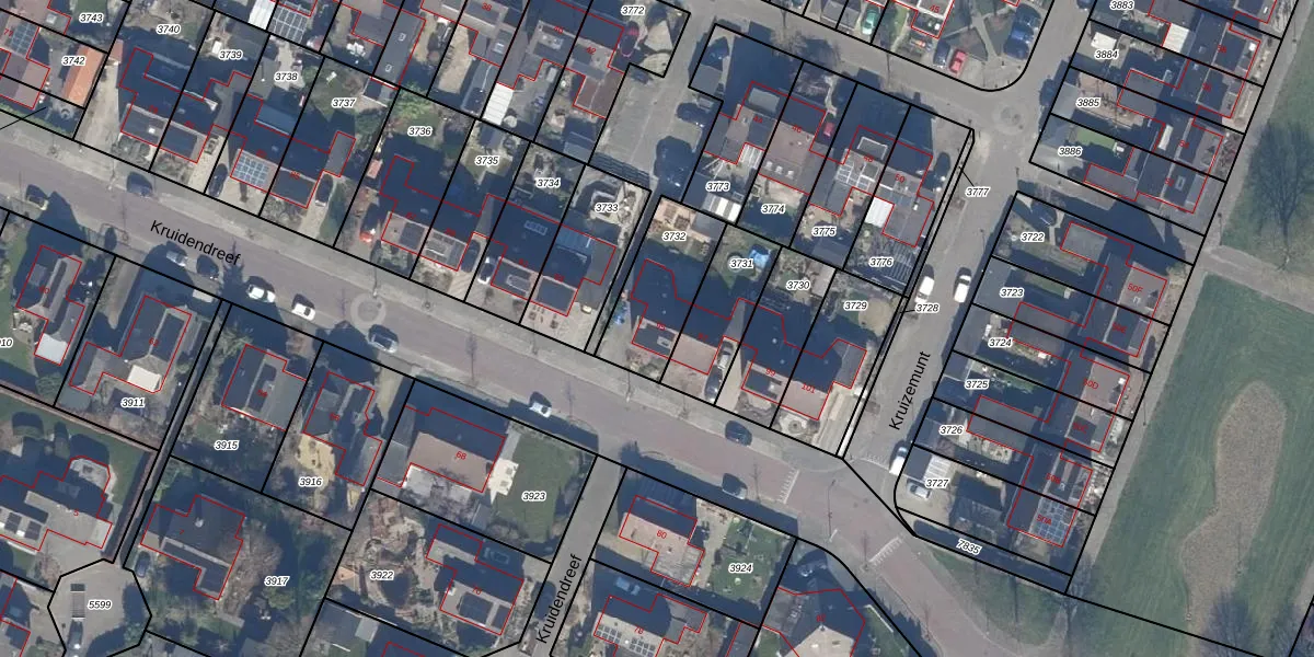 Kruidendreef 95 is gelegen op kadastraal perceel DTN01A3732. Deze kadastrale aanduiding is uniek en wordt gebruikt door het Kadaster om eigendomsrechten en andere zakelijke rechten vast te leggen. Het perceel maakt onderdeel uit van de kadastrale gemeente Dronten.